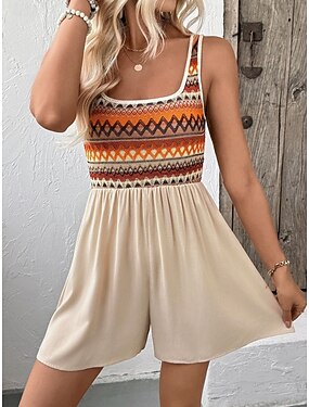 Femmes Normal Combishort Actif Géométrique Sans manches Col en U Patchwork Quotidien Vacances Coupe régulière Kaki Été