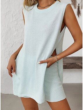 Femmes Ensembles de Pantalons Haut boléro Sans manches Col rond Uni Patchwork Élégant Mode Streetwear Occasionnel Quotidien Extérieur Noir Rouge Bordeaux Bleu Été Coupe régulière