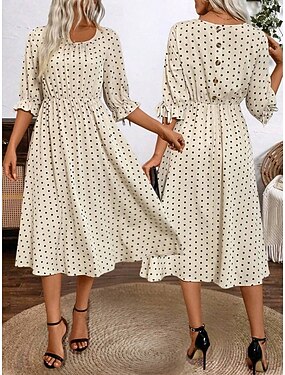 Femmes Robe Midi Robe trapèze Robe d'été Vacances Occasionnel Quotidien Date Coupe régulière Graphique À pois Demi Manches Col ras du cou Beige Été Printemps