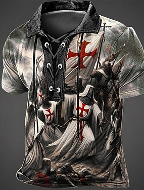 Homme Croix Templière Polo Manche Courte Polos Col à lacets ancien Occasionnel Vêtements de rue Tenue quotidienne Impression 3D Maille Respirante Printemps & Été Noir Marron Gris