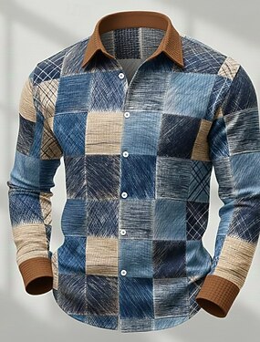 Homme Géométrique Bloc de Couleur Patchwork Chemise Chemise gaufrée Chemise Décontractée manche longue Mode Décontractée Tenue Quotidienne Fête Été Printemps Col Rabattu Impression 3D Textur