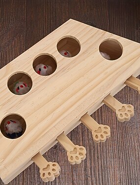 Jouet pour chat en bois recyclé avec 6 distributeurs de friandises interactifs cachés &Découpes d'empreintes de pattes - stimulation mentale sans danger pour plusieurs chats &Jouet d'exercice pour