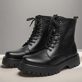 Bottes de combat noires à lacets pour hommes, chaussures de mode décontractées de style militaire robustes en cuir véritable pour l'extérieur et le costume d'Halloween