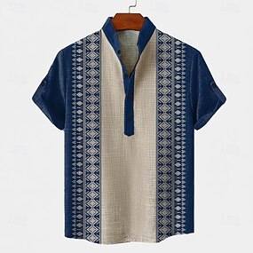 Homme Chemise Chemise en lin Chemise d'été Chemise de Plage Uni Vacances Hawaïen Bleu Noir Blanche Rose Claire manche longue Col montant Printemps & Été Vêtement Tenue Basique
