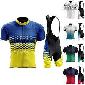 Homme Maillot et Cuissard Avec Bretelles Velo Cyclisme Manche Courte VTT Vélo tout terrain Cyclisme sur route Été Bleu Blanche Jaune Géométrique Pois Vélo Coussin 3D Séchage Rapide Poche Arrière
