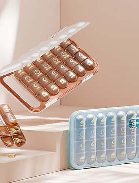 Pilulier portable à 21/28 compartiments, distributeur de médicaments pour 7 jours et 7 jours, grand compartiment divisé, idéal pour les vitamines et les médicaments quotidiens – parfait pour les