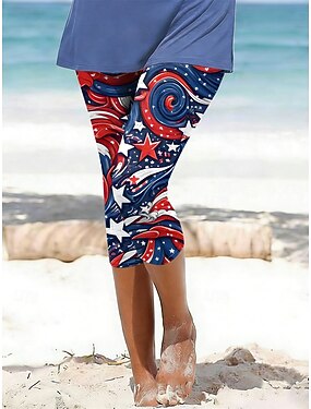 Jour de l'Indépendance Capri pour Femmes Pantalon Leggings Vacances Hawaii Élégant Capris Taille Moyenne Pantalon Graphique Drapeau National Imprimé Confort Élastique Extérieur Vacances Formelle Noir