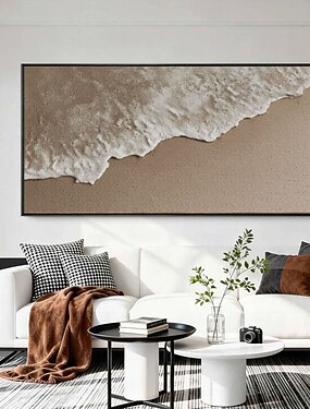 Peinture à l'huile sur toile représentant une plage, peinte à la main, vagues de l'océan blanc, décoration de salon, art mural moderne