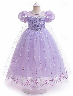 Semaine du livre 2026, robe de fête pour filles, motif flocon de neige, manches courtes, élégante, sequins, résille, style princesse, robe maxi, coupe trapèze, été/printemps, 4 ans et plus, bleu/rose