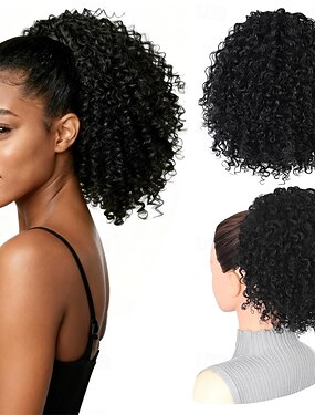 Queue de cheval à cordon pour femmes noires, postiche afro bouclé de 25 cm avec 4 pinces sécurisées, texture douce pour un confort optimal.