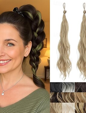 2 paquets d'extensions de queue de cheval tressées longues avec élastiques, postiche en cheveux synthétiques doux et naturels pour femmes noires, extensions de cheveux raides à enrouler autour de la