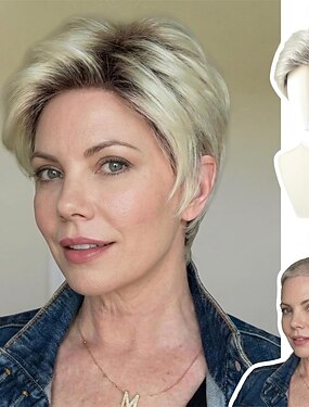 Perruque courte blonde chic de style pixie pour femme - volume vaporeux et mèches légères