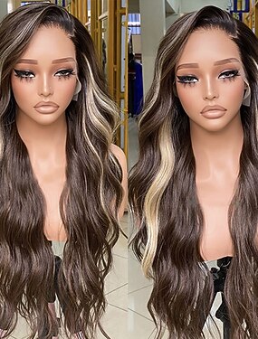 Perruque Cheveux Naturel humain 5x5 Fermeture dentelle frontale 13x4 Cheveux Brésiliens Ondulé Blond Marron Raie au milieu Femmes Densité 150% 180% we say baby hair Cheveux Ombrés Cheveux Mèches