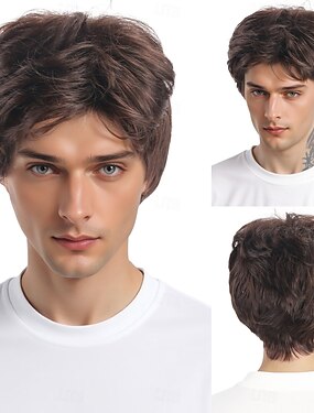 Perruque Synthétique Ondulé Droit crépu Bob court Coupe dégradée Avec frange Fabriqué à la Machine Perruque 10 pouces Brun claire Cheveux synthétiques Homme Classique Confortable Dégradé de couleur