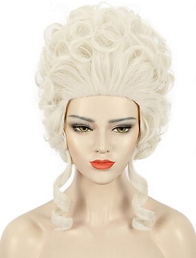 Perruque courte blonde blanche bouclée pour femme, perruque de style colonial, perruque pour déguisement d'Halloween