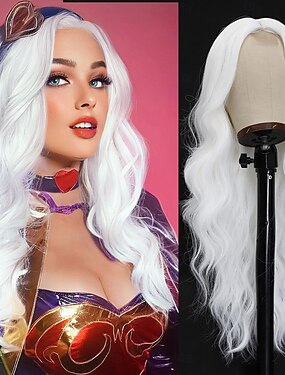 perruque longue bouclée avec frange pour femme - style blanc polyvalent pour cosplay anime &costumes d'Halloween