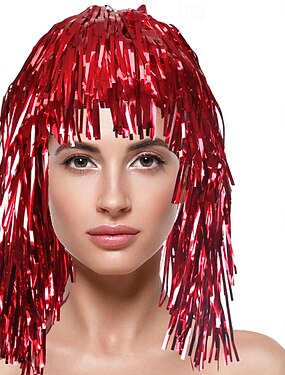Perruque de carnaval 2026 Rouge Bouclé Mi-long Perruque synthétique de festival Mardi Gras Parade Coiffure de costume de cosplay pour Femmes