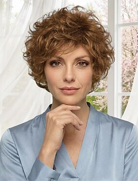 Perruque synthétique bob bouclée chic pour femme - châtain clair avec boucles naturelles, style volumineux et duveteux