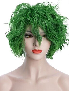 Perruque de carnaval 2026 Rose Vert Bouclé Ondulé Court Perruque synthétique de festival Mardi Gras Parade Coiffure de costume de cosplay pour Femmes
