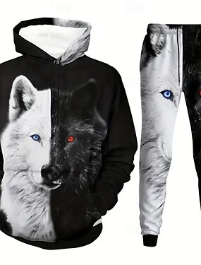 Homme Animal Loup 2 pièces Ensembles de sweat-shirts 3D Survêtement Sweat à Capuche manche longue Pantalon long À capuche Décontracté Quotidien Athleisure Impression 3D Printemps Automne Hiver Noir