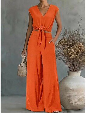 Femmes Ensembles deux pièces Camisole Ensembles de Pantalons Sans manches Bretelle Uni Mode Streetwear Occasionnel Quotidien Extérieur Kaki Été Coupe régulière