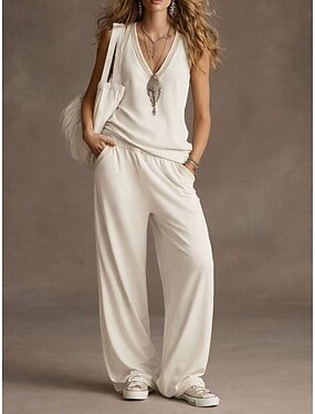 Femmes T-shirt Ensembles de Pantalons Sans manches Col en V Couleur Unie Mode Streetwear Quotidien Extérieur Vacances Gris foncé Noir Beige Été Coupe Ample