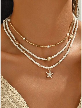 Ensemble collier ras-de-cou à trois rangs avec pendentif étoile de mer en alliage bohème pour femme, bijoux de plage pour filles et femmes, idéal pour les voyages et le quotidien.