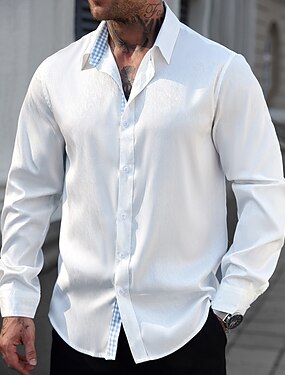 Homme Chemise Chemise d'été Chemise Décontractée Chemise de Plage Chemise Boutonnée Blanche manche longue Uni Revers Vacances Hawaïen Boutonné Vêtement Tenue Polyester Mode Occasionnel Confortable