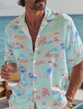 Homme Cocotier Plantes Tropicales Chemise Chemise à col cubain Chemise hawaïenne Manche Courte Hawaïen Vacances Fête Tenue de plage Été Printemps Chemise à col camp Impression 3D Bleu Rose Claire