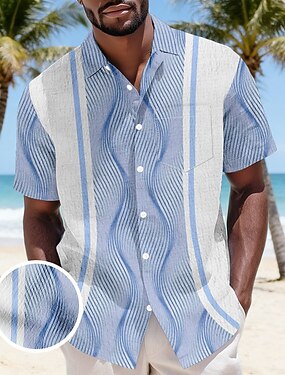 Homme Géométrique Vagues Chemise Boutonnée Chemise froissée Chemise en crépon Manche Courte Mode Décontractée Quotidien Vacances à la Plage Été Printemps Col Rabattu Impression 3D Chemise à texture