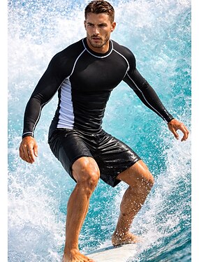 Homme Standard Maillot Anti UV Tee-shirt de Baignade Tropical Blocage de couleurs UPF50+ Protection UV Séchage Rapide manche longue Maillot de Bain Tee-shirts anti-UV, tops thermiques Surf