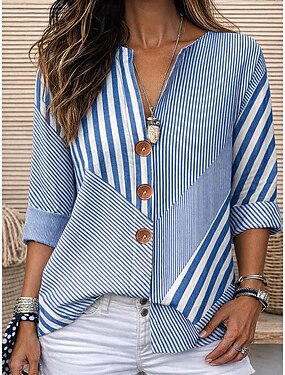 Femmes Chemisier Imprimé Graphique Rayé Élégant ancien Occasionnel Manche 3/4 Col ras du cou Hauts Réguliers Quotidien Fête Tenue de plage Bleu Rose Claire Vert Été Printemps