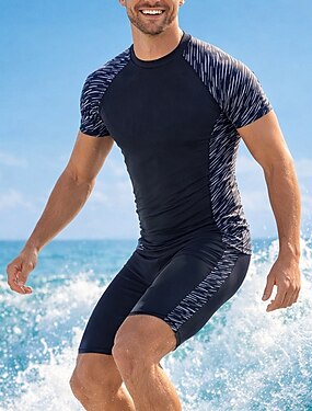 Homme Maillot Anti UV Maillot de bain 2 Pièces Géométrie Jambes jusqu'au genou Protection UV Séchage Rapide Élastique Manche Courte Maillot de Bain Maillot de bain Surf Plongée Plage Été