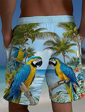 Homme Cocotier Perroquet Plantes Tropicales Maillots de bain Shorts de bain Shorts de Surf Taille Moyenne Hawaïen Vacances à la Plage Poches Latérales doublure en maille Taille élastique avec cordon