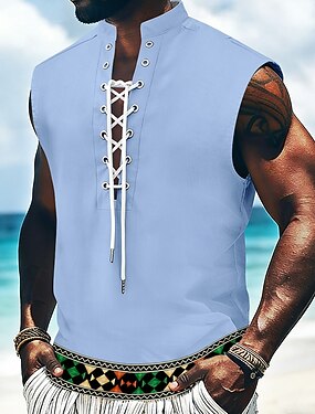 Homme Formes Géométriques Ethnique Débardeur Chemise de pirate à lacets Chemise à col montant Sans manches Vintage Rétro Décontracté Quotidien Vacances à la Plage Été Printemps Col mandarin