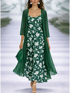 Femmes Robe Ensemble Robe trapèze Élégant Vacances Fleuri Graphique Superposé Imprimé Robe maxi Manche 3/4 Col en V Quotidien Vacances Bleu Rose Claire Violet Été Printemps Coupe régulière