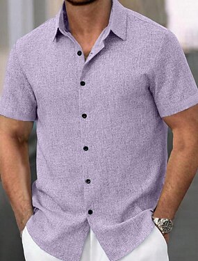 Homme Chemise Chemise d'été Chemise Décontractée Chemise Boutonnée Chemise en coton Uni Plage Vacances Noir Rose Claire Bleu Ciel Violet Manche Courte Col Rabattu Été Vêtement Tenue