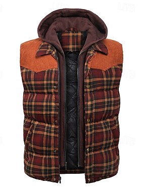 Homme Gilet matelassé Gilet Vacances Quotidien Date Mode Occasionnel Automne Hiver Avec Poches Polyester Chaud Confortable Plaid Fermeture éclair À capuche Coupe régulière Rouge Vert Vert Véronèse