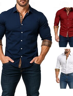 Homme Chemise Chemise habillée Chemise Boutonnée Plaid Occasionnel Quotidien Noir Blanche Rouge Bleu de minuit manche longue Col Rabattu Printemps Automne Vêtement Tenue Patchwork