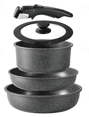 Ensemble de casseroles antiadhésives détachables pour un usage domestique, comprenant une poêle en pierre, une marmite et une casserole universelle à cuisson électrique.