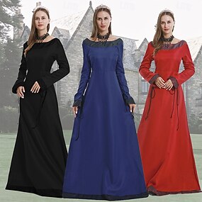 Médiéval Renaissance Longueur au sol Robe Manches longues Sorcière Princesse Reine Ligne A Déguisement Femmes Celtique Fantaisie Halloween Carnaval Foire de la Renaissance LARP Soirée à thème rétro