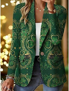Femmes Blazer Confortable Respirant Avec Poches Boutons Imprimé Quotidien Occasionnel Occasionnel Soirée Jour de la Saint Patrick Simple Boutonnage Régulier Revers Cranté Coupe régulière manche longue