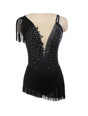 Robe de Patinage Artistique Femme Fille Patinage Robes Noir Patchwork Franges Maille Spandex Elastique Entraînement Professionnel Compétition Tenue de Patinage Chaud Cristal / Stras Sans Manches