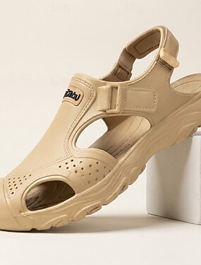 Sandales de sport beiges pour homme, à bout fermé, bride arrière ajustable, légères, respirantes et confortables, idéales pour les voyages, les loisirs de plein air, les activités estivales et le quotidien.