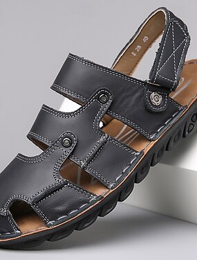 Sandales en cuir noir à bride ajustable pour homme – respirantes, légères et confortables pour les activités de plein air et les tenues décontractées d'été.