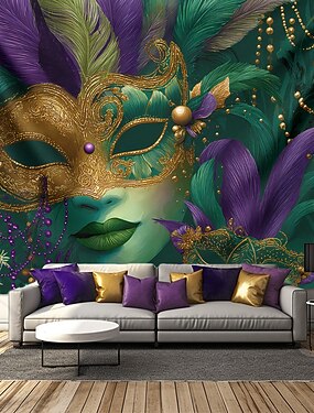 Mardi Gras Couverture de porte de garage Grande suspension Masque Plume Luxe 3D Soirée Outdoor Arrière-plans de prise de vue Porte d'Entrée Bal Masqué Décoration d'intérieur