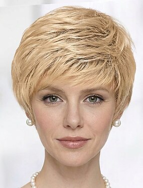Perruque courte et charmante pour femme - coupe pixie blonde naturelle dégradée