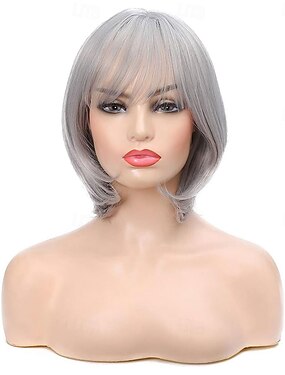 Perruque Synthétique Droit crépu Lisse naturel Coupe Asymétrique Séparation profonde Fabriqué à la Machine Perruque 10 pouces A1 Cheveux synthétiques Femmes Fête Classique Confortable Argent