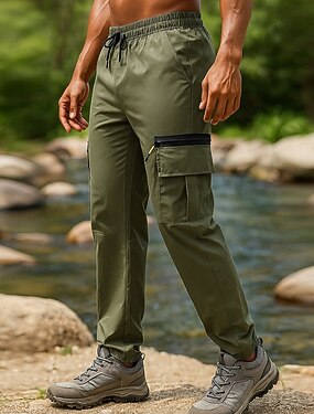 Homme Pantalons Cargo Pantalons de randonnée Pantalon de Pluie de Randonnée Printemps Automne Extérieur Coupe régulière Imperméable Coupe-vent Léger Bas Avec Poches Noir Vert Véronèse Camping