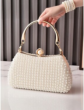 Pochette de soirée en perles pour femme avec poignée dorée, sac à main élégant pour mariage, cocktail et événements formels – disponible en plusieurs couleurs